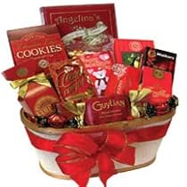 Fuel their desire for sinfully good sweets and decadent chocolate treats presented in this great gift basket ready for gift giving. Designed in classic red and gold tones, its great for both Christmas gift giving events for friends and family, or on a more personal note, send this gift to celebrate a special occasion with the one you love. Enjoy Almond Roca Butter Toffee Cookies, classic Butter Shortbread Cookies, everybodys favorite Chocolate Chip Cookies, Café Comforts Chocolate Supreme Cocoa, sweet and spicy Chipotle Almonds, Butter Toffee Popcorn, Chocolate Wafer Cookies, luscious Lindt Chocolate Truffles, Guiylan Belgian Chocolates, Strawberry bonbons and Very Special Chocolate Truffles. Each gift is hand crafted with attention to detail, tied with ribbon and includes a personalized gift card message from you to convey your best wishes. We offer shipping and delivery service Monday through Friday only; standard ground shipping has an expected delivery 4-8 business days after you place your order, expedited shipping has an expected delivery 2-5 business days after you place your order. To determine when your gift will be delivered, please review the "Shipping Rates and Policies" link.